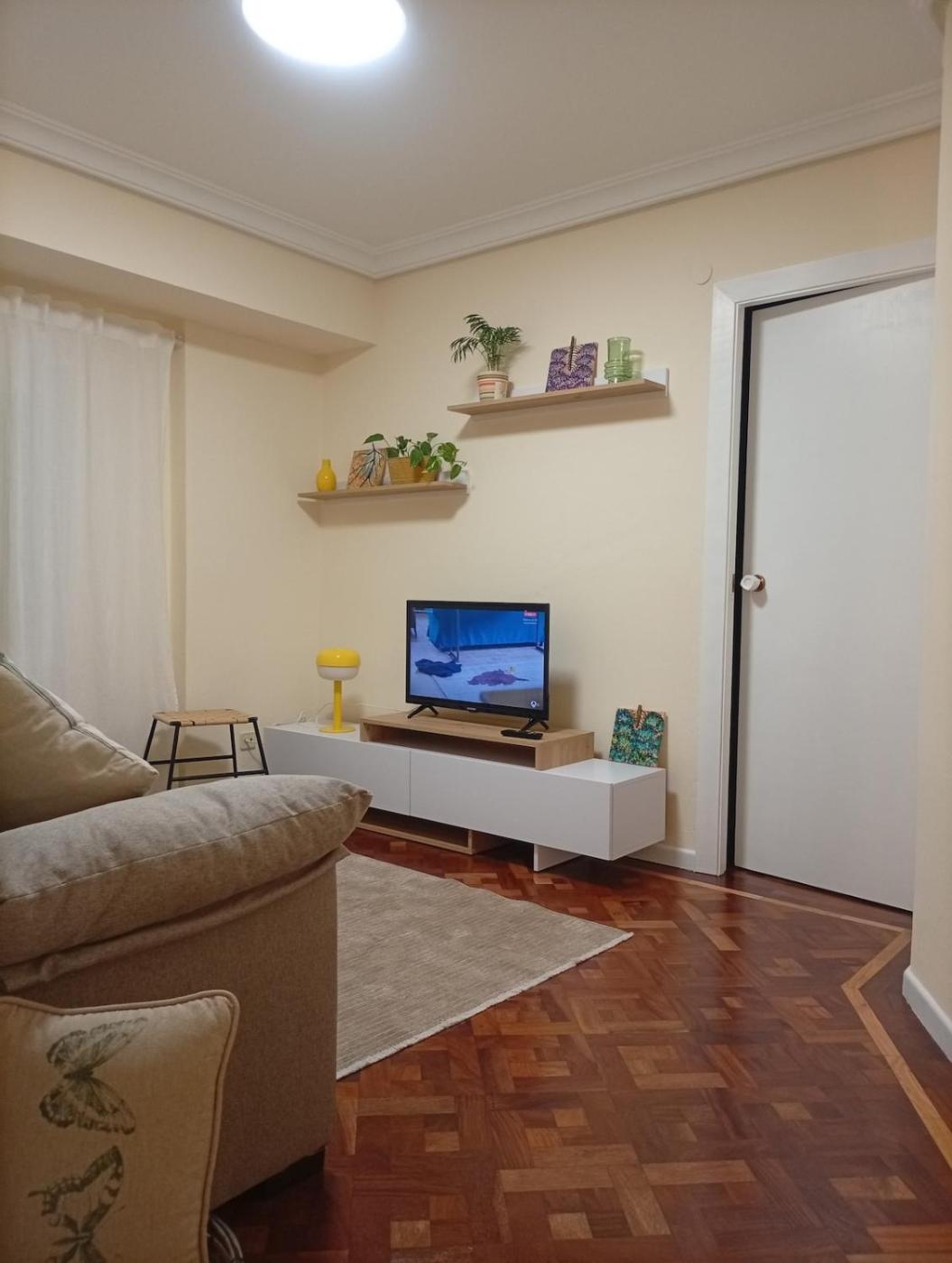 Apartamento de 2 dormitorios. The well-equipped kitchen features a stovetop, a refrigerator, kitchenware and an oven. The apartment has parquet floors, a seating area with a flat-screen TV, a washing machine, a coffee machine as well as city views. The unit offers 2 beds.