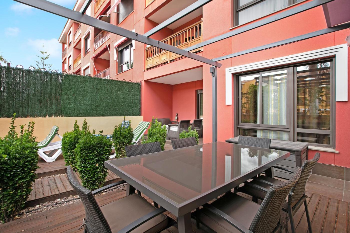 Apartamento de 1 dormitorio con vistas al jardÃn. This apartment consists of 1 living room, 1 separate bedroom and 1 bathroom with a shower and free toiletries. The apartments kitchen, which features kitchenware and a microwave, is available for cooking and storing food. Featuring a terrace with garden views, this apartment also provides a washing machine and a TV. The unit offers 2 beds.