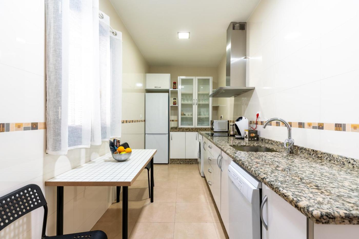 Apartamento de 3 dormitorios. This spacious apartment features 1 living room, 3 separate bedrooms and 2 bathrooms with a bath and free toiletries. Guests can make meals in the kitchen that features a stovetop, a refrigerator, a dishwasher and kitchenware. The air-conditioned apartment features a flat-screen TV with streaming services, a washing machine, a tea and coffee maker, a seating area as well as city views. The unit has 6 beds.