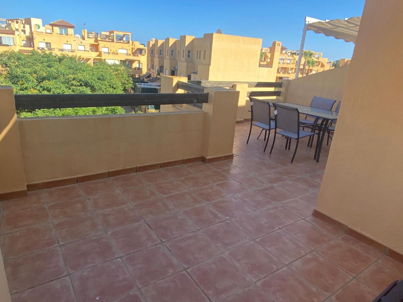 APARTAMENTO ATICO Vera playa Puerto Rey es un alojamiento con piscina al aire libre y terraza que se encuentra en Vera, a 11 min a pie de Playa de Puerto Rey, a 11 km de Marina Golf Mojácar y a 4 min a pie de Club de golf Valle del Este. Este apartamento dispone de piscina privada, jardÃn y parking privado gratis.